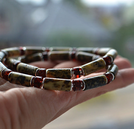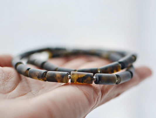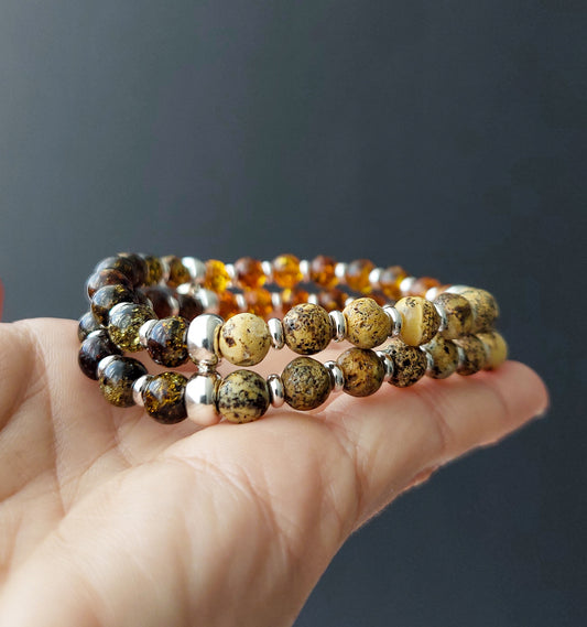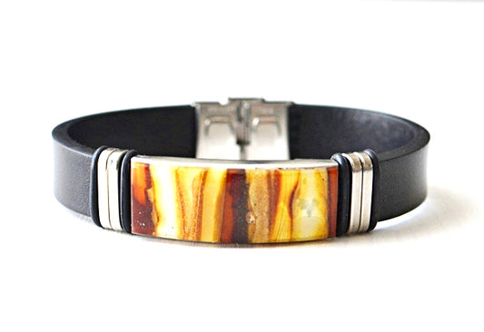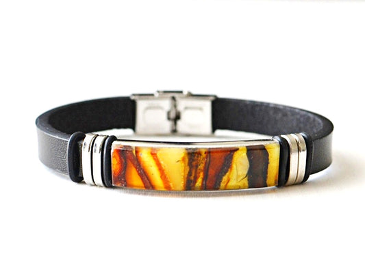 Explore unique, contemporary amber necklaces and bracelets for men available in various materials including sterling silver, stainless steel, leather and more.