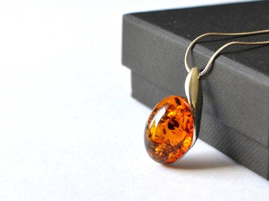 Browse our unique and extensive range of natural amber pendant necklaces with sterling silver. A woman is absolute beauty for us and jewelry should only emphasize her natural grace. Amber, thanks to its colour, warmth and natural beauty, gives a woman special charm.