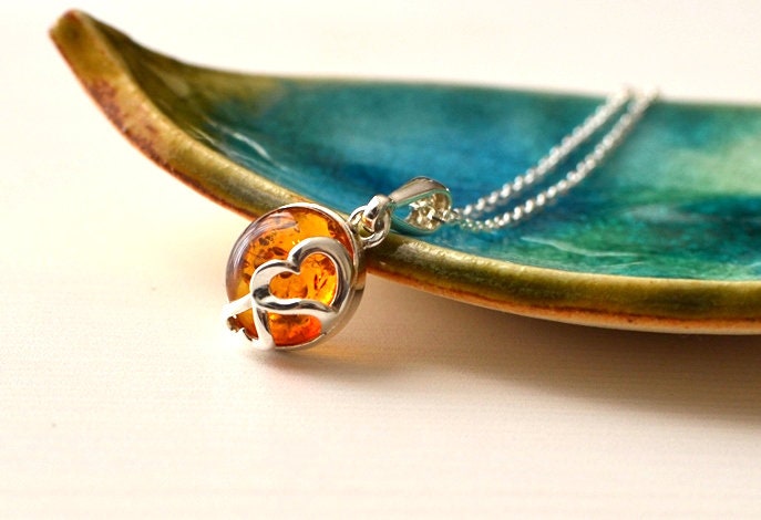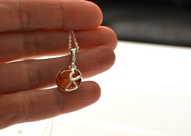 Amber pendant necklace is made of Baltic amber and sterling silver element (Ag 925).