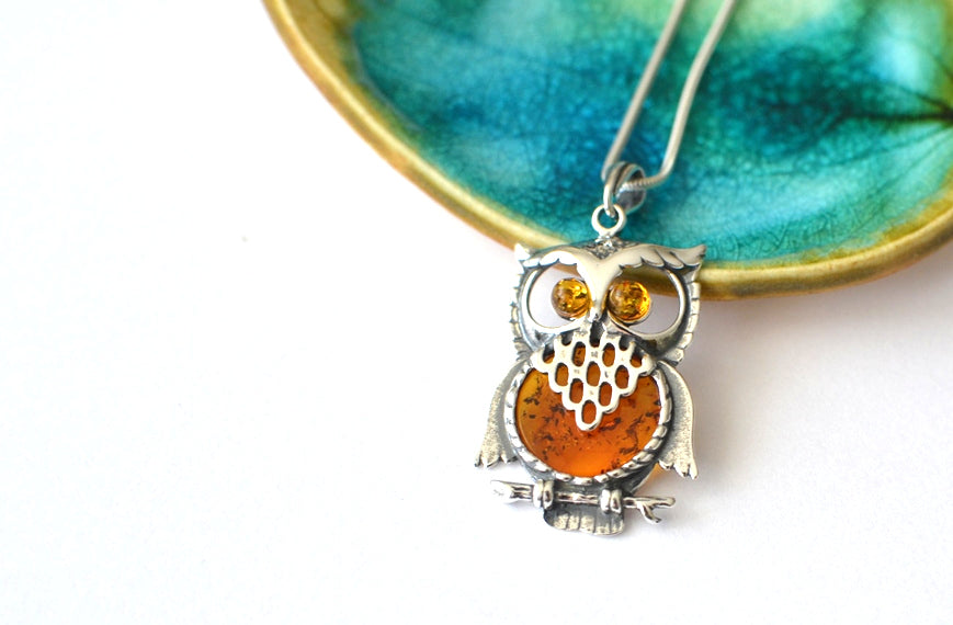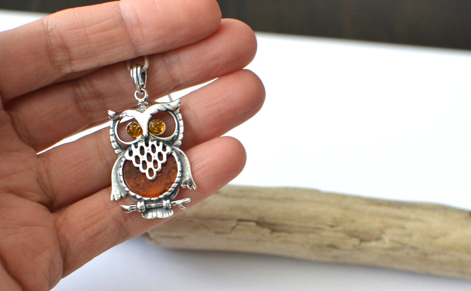 Amber jewelry featuring pendant necklace - stone necklace is made of Baltic amber and sterling silver element (Ag 925).