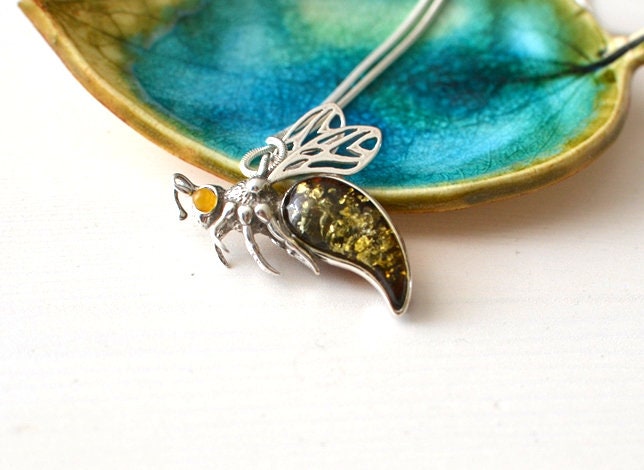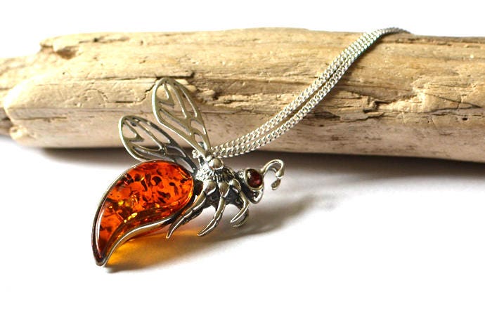 This particular pendant is made of Baltic amber and sterling silver element (Ag 925).