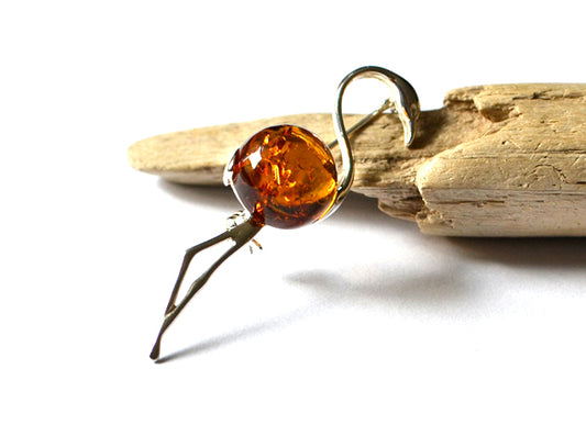 Amber brooch with sterling silver - effective jewelry ornament. A small embellishment which influence on your closet. Tiny, artistic jewelry match beautifully with other jewelry accents. Amber brooch will be an elegant gift for anyone who would like to have a piece of nature always with them.