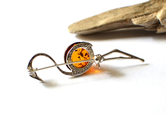 Sterling Silver Amber Brooch