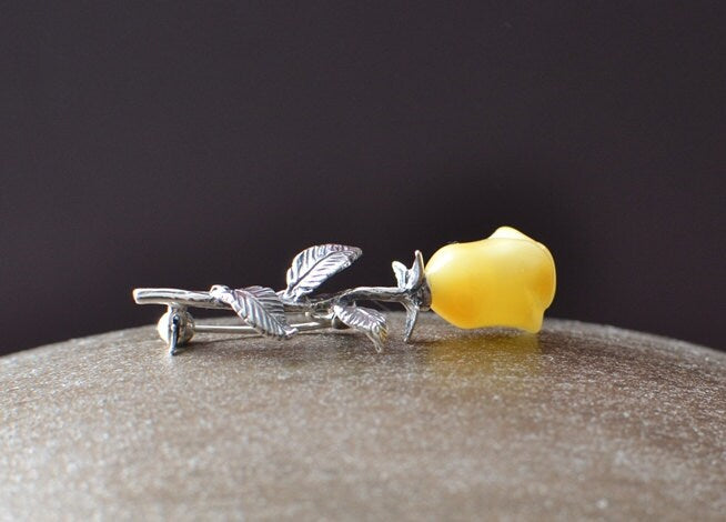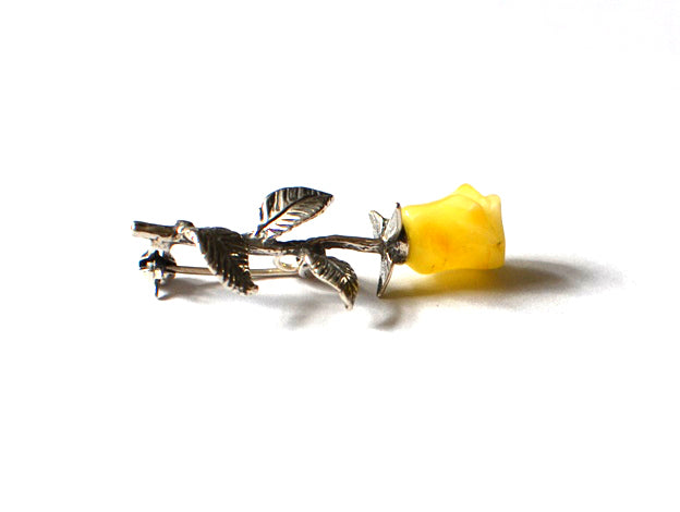 Bring a touch of timeless elegance to your style with this handmade sterling silver brooch featuring a natural yellow Baltic amber rose.