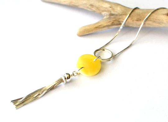 Sterling Silver Tassel Necklace with Yellow Baltic Amber