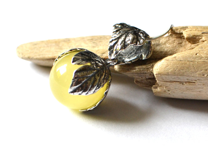 This particular pendant is made of Baltic amber and sterling silver element (Ag 925). Beautiful amber pendant with unique wonderful silver pattern