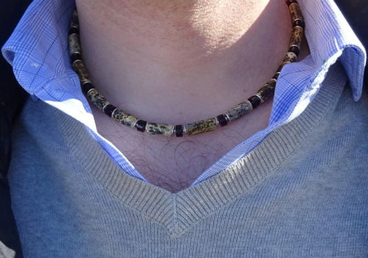 Explore unique, contemporary amber necklaces and bracelets for men available in various materials including sterling silver, stainless steel, leather and more.