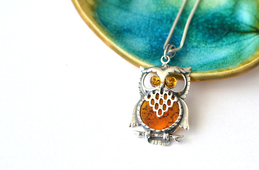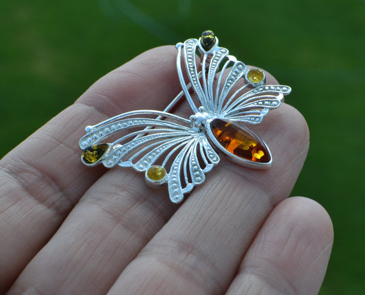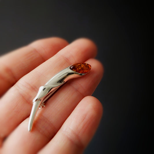 Sterling Silver Amber Brooch, Floral Amber Pin
