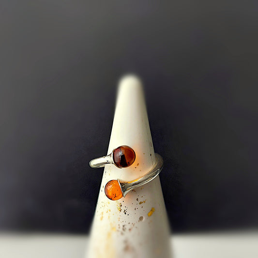 Adjustable Sterling Silver Ring with Baltic Amber Balls