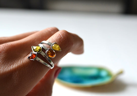 Sterling Silver Ring with Baltic Amber, Blue Topaz & Citrine