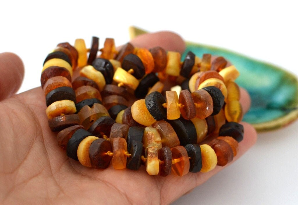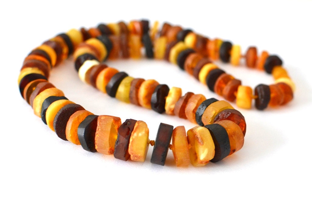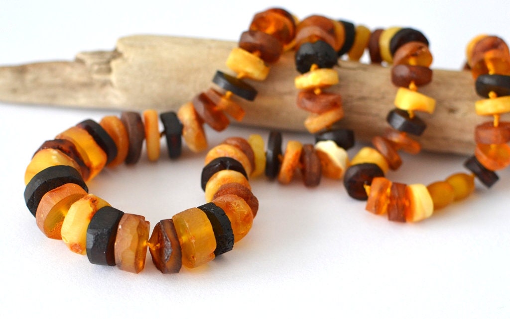 This particular necklace is made of raw Baltic amber beads.