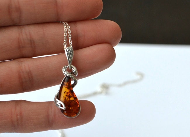 Silver Snake Amber Charm Necklace