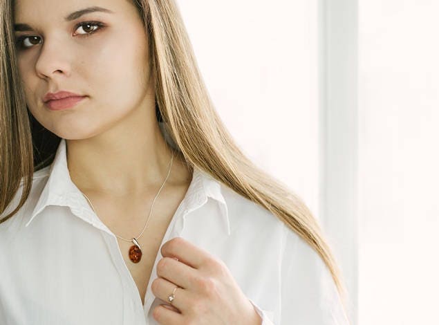 Amber is good to wear for any everyday life occasion.  Amber jewelry featuring pendant necklace - stone necklace is made of Baltic amber and sterling silver element (Ag 925).