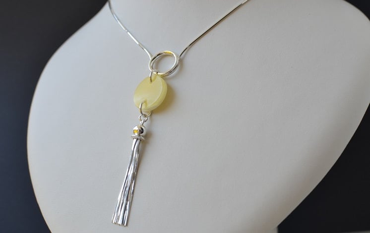 stone Necklace, Silver Tassel Necklace, stone Jewelry, Modern Necklace, Real amber, gift for wife, minimalist jewelry, necklace for mom