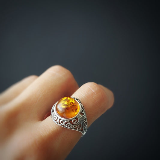 Victorian amber sterling silver ring