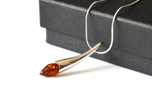 Simple Silver Amber Pendant Necklace