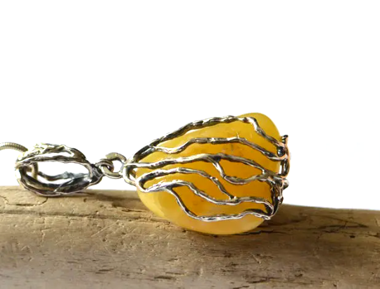 Amber is good to wear for any everyday life occasion Amber drop pendant on sterling silver thin snake chain (Ag 925).