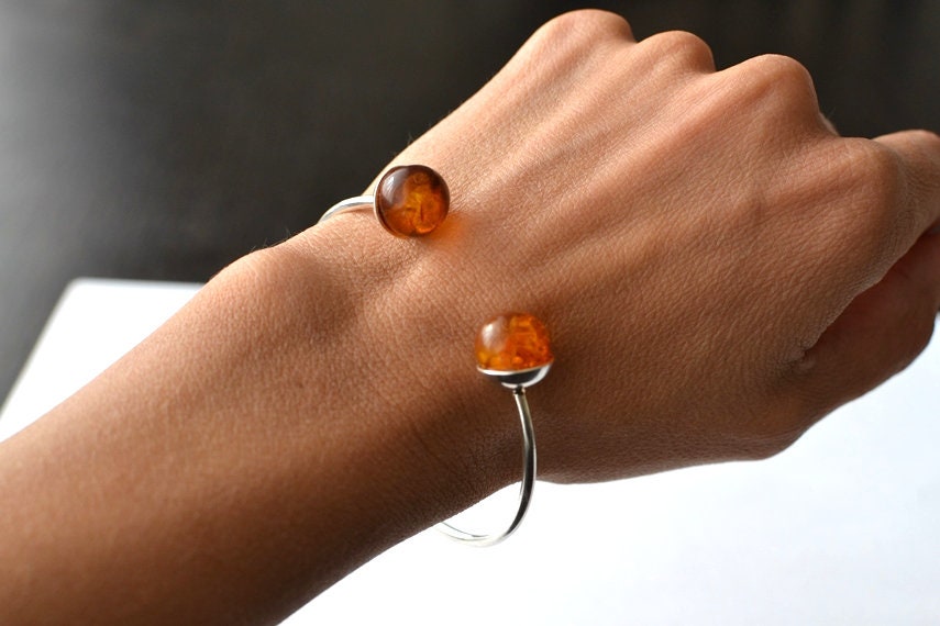 This particular bracelet is made of natural baltic amber and sterling silver