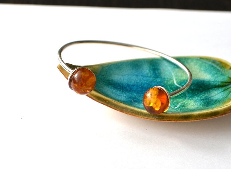 Sterling Silver Cuff Amber Bracelet