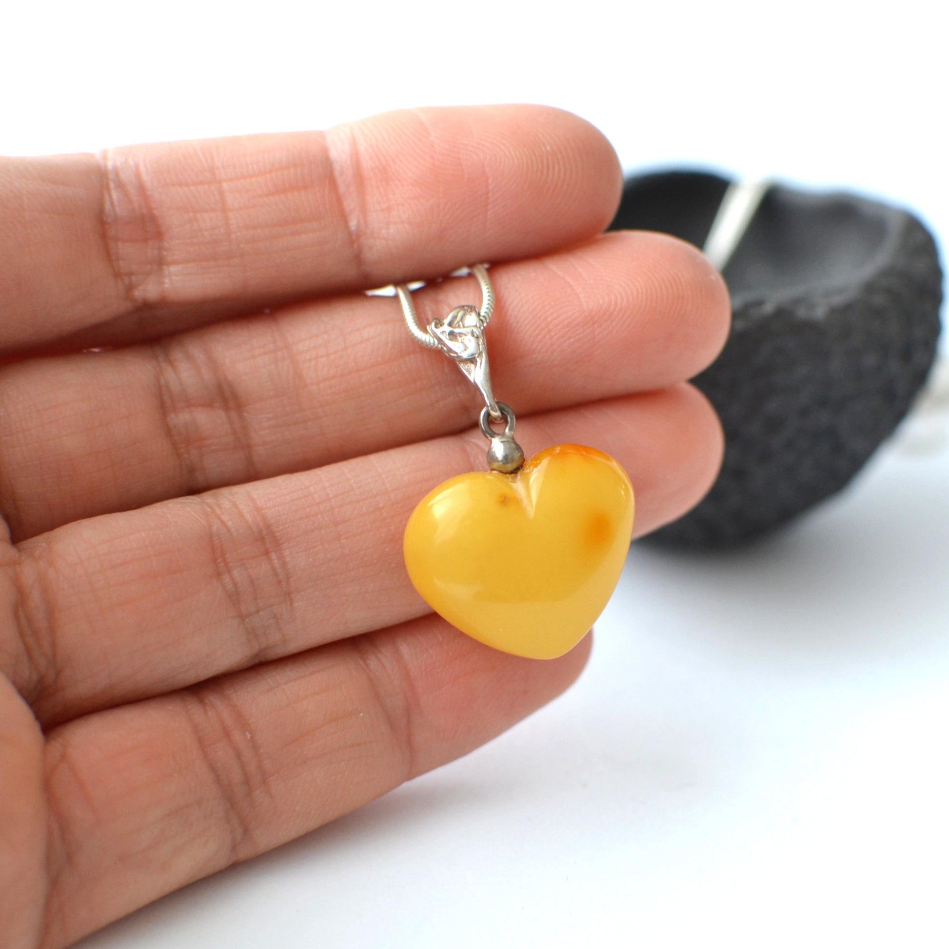 Amber Heart Pendant Necklace