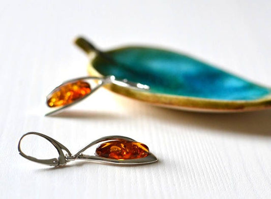 WyprzedaneSun Silver Earrings with Yellow Amber