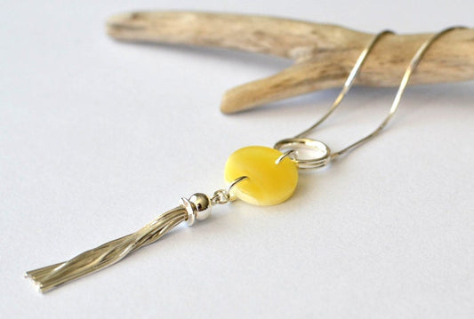 stone Necklace, Silver Tassel Necklace, stone Jewelry, Modern Necklace, Real amber, gift for wife, minimalist jewelry, necklace for mom