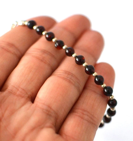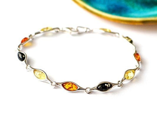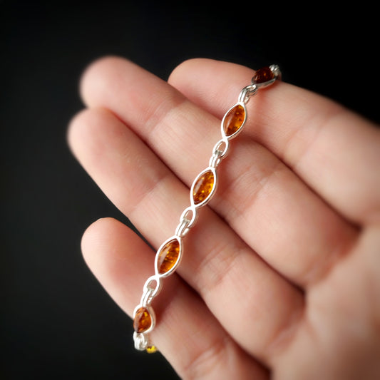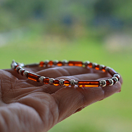 Amber Bracelet with Silver, Modern cognac amber jewelry, natural amber gift
