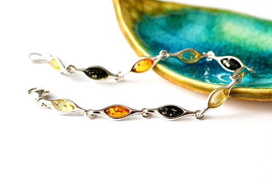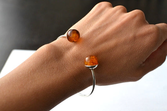 Browse our select range of quality women's bracelets - from traditional silver links bracelets to chunky raw stone amber ones. Bracelets can either be a subtle addition to your look or give your outfit a dramatic finish. Decorate your wrist with dainty chains with natural Baltic Amber. For a more dramatic look, accessorize your look with chunky bangle raw stones bracelets.