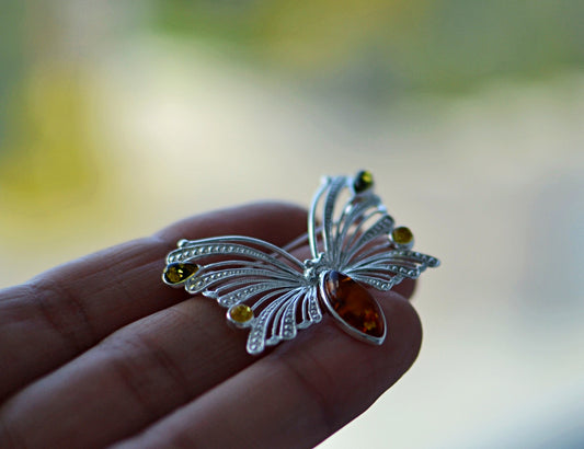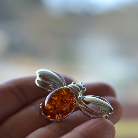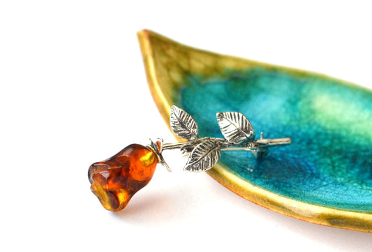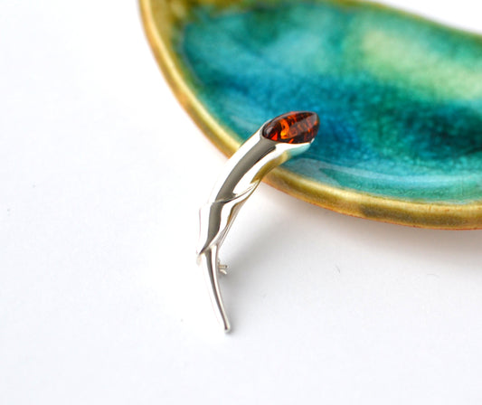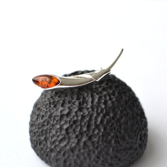 Amber brooch with sterling silver - effective jewelry ornament. A small embellishment which influence on your closet. Tiny, artistic jewelry match beautifully with other jewelry accents. Amber brooch will be an elegant gift for anyone who would like to have a piece of nature always with them.