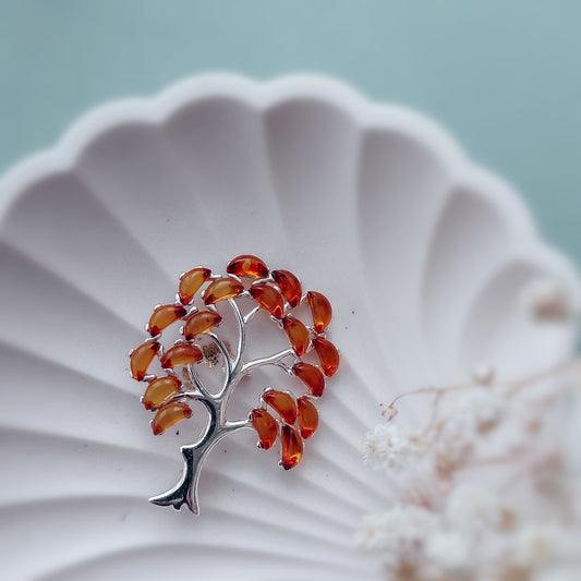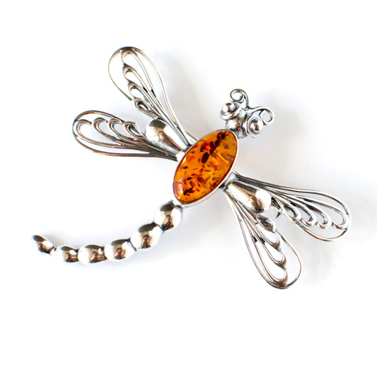 Sterling Silver Amber Brooch, Floral Amber Pin