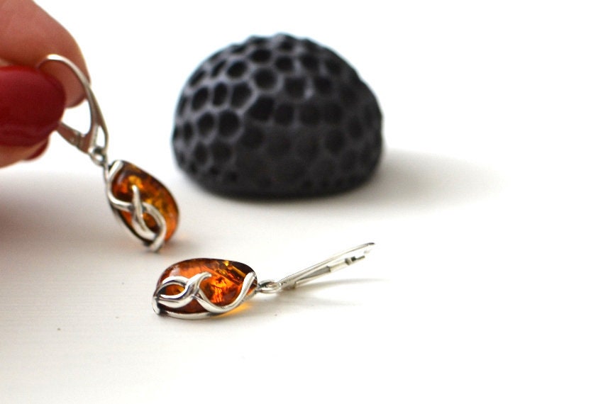 Simple dangle earrings hand made of natural baltic stone and sterling silver (925).