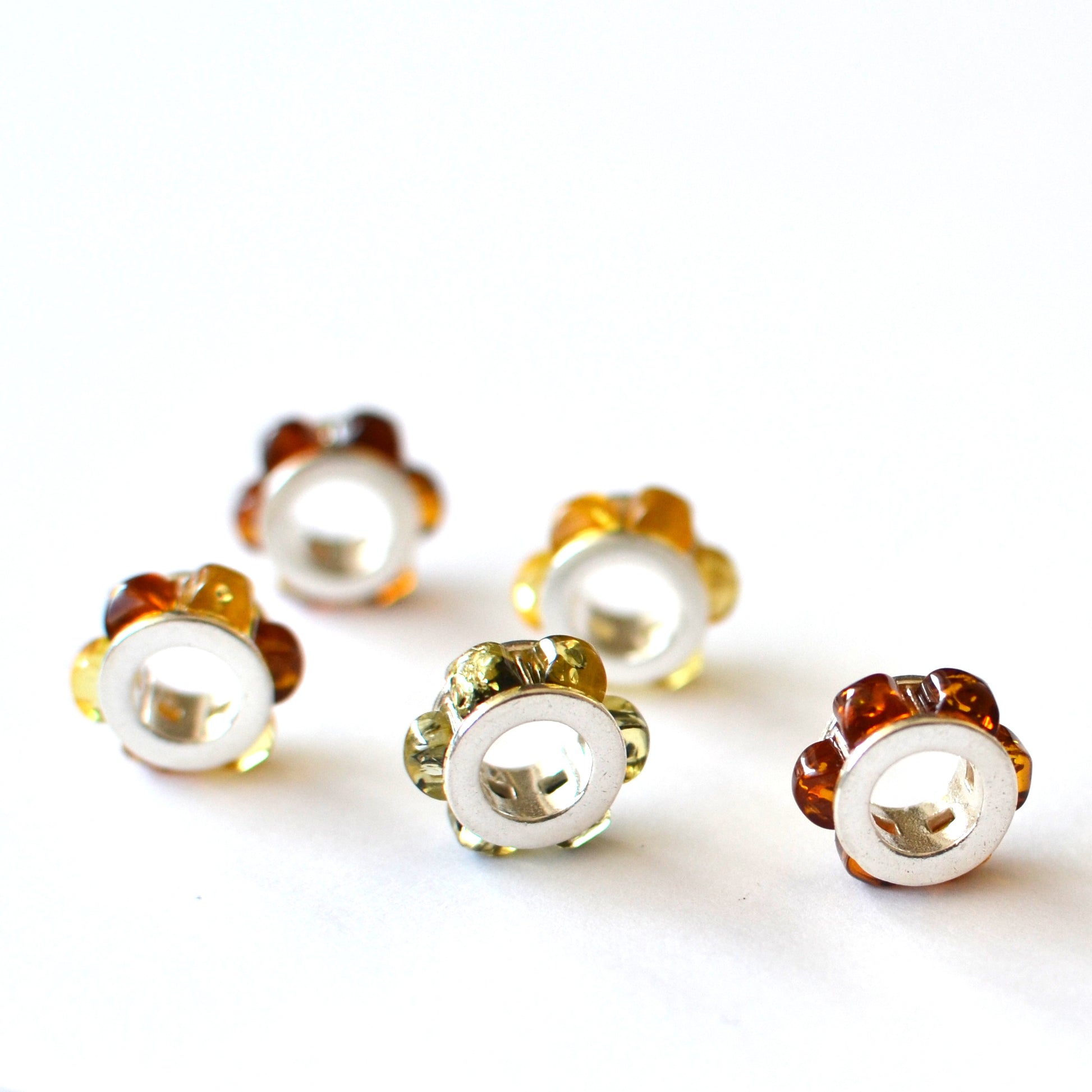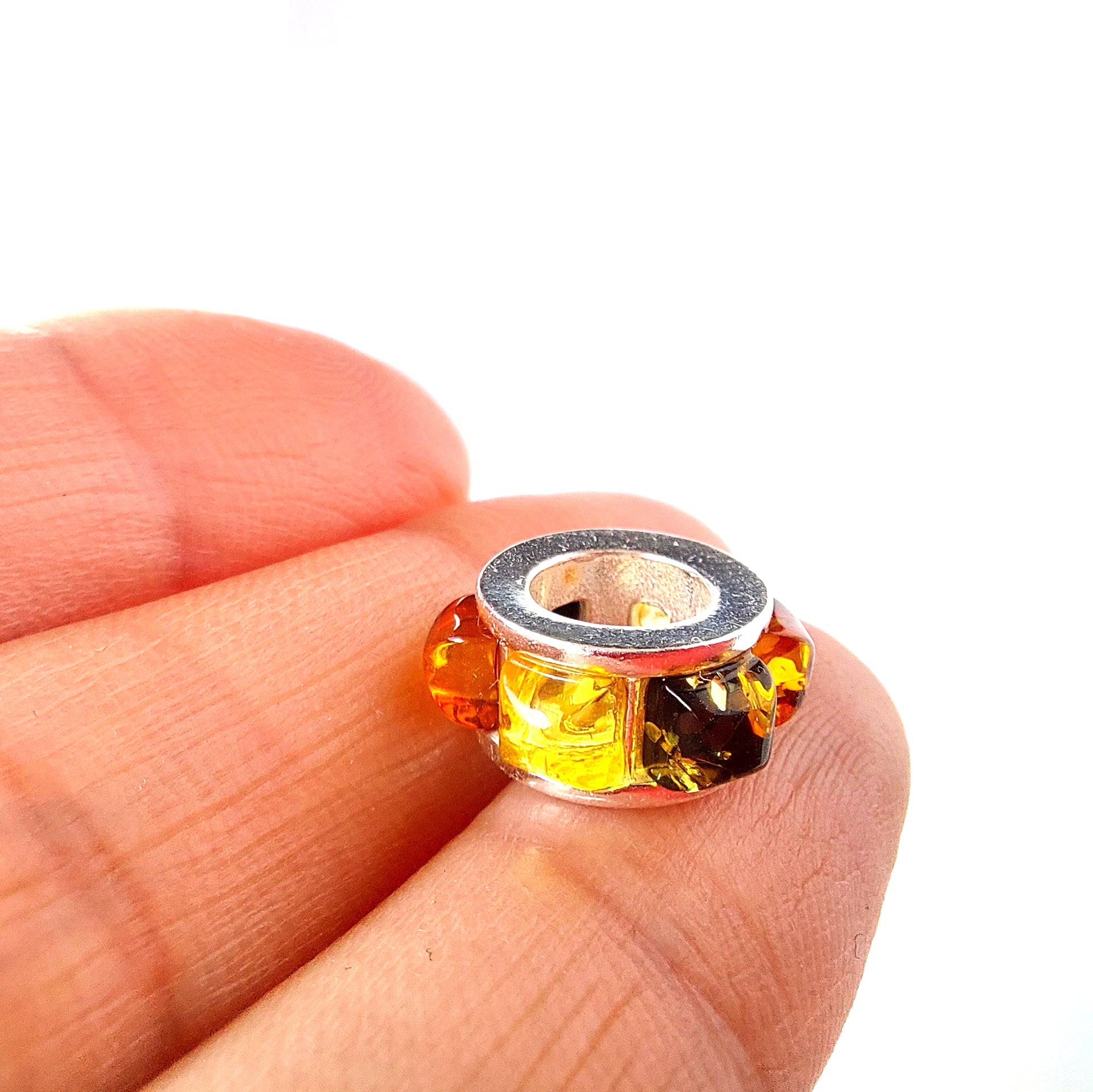 Amber Trollbeads Charm Pandora Style Compatible Charm gift, Baltic Amber Charm with Sterling Silver core, large hole colorful amber beads