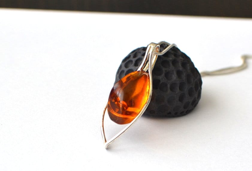 Amber jewelry featuring pendant necklace - stone necklace is made of Baltic amber and sterling silver element (Ag 925).